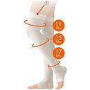 足がむくみやすい方、立ち仕事の多い方、デスクワークで座っている時間が長い方におすすめの一般医療機器のシルク混サポーター(2枚組)です。足首からふくらはぎ、膝上に向かって、17hpa、15hpa、11hpaと段階的に圧力を加えることにより、血行・リンパの流れを促進し、疲れやむくみ、下肢静脈瘤を予防・軽減。薄手でもしっかり!履き口は幅広でくいこみにくい!安心の日本製です。(お悩み-着圧)