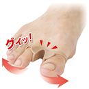 『外反パッド 歩指ら〜く』は、親指と人差し指の間を適度に広げて、足指をやさしく保護してくれます。ストッキングやサンダルでも目立ちにくい。洗えるので清潔に繰り返し使えます。(お悩み-外反母趾)