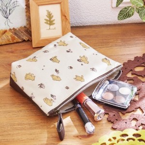 メイクアイテムや救急セットなど、こまごました物を収納するのに便利な舟型ポーチ。底マチ付きなので、かさばるパウダリーケースや簡易充電器などもすっきり収まります。ファスナー開閉で開け閉めもラクチン。帆布生地を使用したフロントには、クラシカルなくまのプーさんデザインをあしらいました。裏面に合皮素材を合わせた、大人にも使いやすいつくりが魅力。