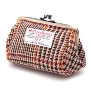 伝統あるスコットランドの高品質ツイードを、日本の技術で丁寧に仕上げた、こだわりの詰まったポーチ。表情のあるトラッドなチェック柄とがま口がマッチした、愛らしさたっぷりのアイテムです。ハリスツイードを証明する、フロントのブランドネームがアクセントに。マチ幅のある収納力と、かわいいフォルムも魅力。大きく開く開閉で、小物の出し入れスムーズです。