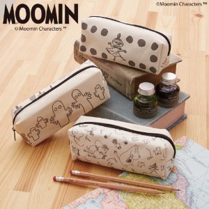コットン100%のナチュラルな素材に、ムーミン谷の仲間たちを大人っぽいモノトーンでデザイン。表裏で柄が異なるのもポイントです。内側はPVCラミネートで汚れにくく、マチ幅があるので文房具などをたっぷり収納OK。小さめのコスメを入れるのにもおすすめです。