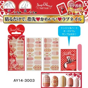 人気コスメブランド「エンジェル ハート」とコラボしたネイルシールが新登場。ファッショナブルなデザインと、両手で2〜3回分、両手・両足のコーディネートもできる32ピース(2シート)のボリュームもうれしいアイテムです。今話題のネイルシールは、爪にぴったりフィットするので貼りやすく、簡単なのにキレイな仕上がり。オフも剥がすだけだから、爪へのダメージも軽減できます。選ぶのも楽しい5タイプをご用意。ブランド人気No.1のフレグランス「エンジェルハート」のサンプル(2ml)、ネイルファイル(爪ヤスリ)も付いています。「トップノート」…アプリコット、マンダリン、パイナップル、グレープフルーツ「ミドルノート」…ピーチ、ジンジャー、すずらんブーケ、フリージア「ラストノート」…ピーチブロッサム、ホワイトムスク、アンバーグリス …