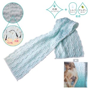 ボディタオルとして使えば、凸状に織り込んだマイクロファイバーがうぶ毛や古い角質を絡めとり、いつの間にかつるつるのなめらか背中になれちゃうエピタオル。「白金ナノコロイド」「シルクプロテイン」「アルガンオイル」を配合し、明るい肌を目指せるホワイトタイプです。