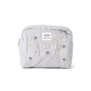 犬猫柄立体ポーチ メイクアップルージュ 3室フラットコスメポーチ