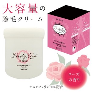 女性のデリケートな悩みに応えてくれる「ラブリーゾーン」発。腕や脚・背中・脇など、ムダ毛のお手入れにたっぷり使える、大容量・525mlの全身用除毛クリームです。ケアしたい部分へクリームを塗り広げれば、5〜10分でごっそりキレイに!液だれしないこってりテクスチャーのクリームには、アロエエキスやヒアルロン酸といった保湿成分をはじめ、整肌成分にローズマリーエキス、さらに透明肌を目指す保湿成分エバーセルホワイトなどをたっぷり配合。お肌にやさしく、しっかり除毛ケアができます。除毛剤特有のツンとしたニオイを抑えた、ふんわりフェミニンなローズの香り♪広範囲にも塗りやすい専用スパチュラ付きです。魅惑のフェロモン成分・オスモフェリンがプラスされているから、愛され度アップも期待できちゃうかも!? …