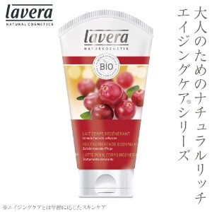 「すべての人にオーガニックコスメを」をコンセプトに、独自のノウハウで天然成分を配合し、スキンケア効果の高い製品を生み出し続けるドイツのオーガニックコスメブランド「ラヴェーラ」より。保湿力の高さにこだわった、ボディの乾燥対策・エイジングケア(※)にぴったりのリッチなボディミルクです。オーガニック植物から抽出した2種類の高保湿成分・クランベリー果実エキスとアルガンオイル(アルガニアスピノサ核油)をはじめ、保湿成分を豊富に配合。なめらかなテクスチャーでスッと伸び広がり、角質層へ浸透してうるおいに満ちたハリ肌へ整えます。甘酸っぱいクランベリーの控えめな香り。※ 年齢に応じたスキンケア …
