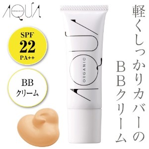 【オーガニックコスメ】厳選されたフレッシュフルーツのエキスを配合。軽やかな使用感で、どこまでもみずみずしい素肌へ導く国産オーガニックコスメ「アクア・アクア」より。スキンケア後はこれひとつでベースメイクOK!やさしいつけ心地でシミ・くすみなどの肌悩みをカバーする、ナチュラルエイジングケア(※1)BBクリームです。うるおいを与えながら美肌を演出するBBクリームとしての役割に加え、8つのスーパーフルーツ由来の成分(※2)で美容液機能をプラス。フルーツに含まれる豊富な成分が、肌のキメを整えてみずみずしいハリ感をもたらします。また、アーモンドやオリーブ由来の保湿オイルに、水を抱き込む性質を持つ植物由来のAQUA成分(※3)も配合。肌表面の水分・油分のグッドバランスをキープして、ツルンと美しい仕上がりが続きます。サラッと心地よい使用感で、洗顔石けんで落とせる点もGOOD!日常紫外線を防ぐSPF22・PA++。※1 年齢に応じたスキンケア※2 ※2イチゴ種子油、ヨーロッパキイチゴ種子油、クランベリー種…