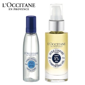 南仏・プロヴァンスの恵みを届ける「ロクシタン」から。高い保湿力をもつシア(※1)を配合。やさしく軽やかな使い心地で、うるおいに満ちたやわらか肌へ導くベーシックスキンケア「シア フェース」シリーズより、超乾燥肌にも素早くうるおいを届ける、サラッとしたテクスチャーのオイルです。角質層への浸透力に優れる美容成分たっぷりのマルラオイル(※2)が、肌をやわらかく整えてシアバター(※1)の浸透をサポート。シアバターとのWアプローチで、ふっくらみずみずしい肌へ導きます。化粧水の後、クリームなどの前に2滴程度の使用がおすすめ。今だけ、うるおいたっぷりの拭き取り化粧水「シア ジェントルフェースウォーター」のミニサイズがついてくるスペシャルキットでお届けします♪※1 シア脂(保湿成分)※2 スクレロカリアピレア種子油(保湿成分) …