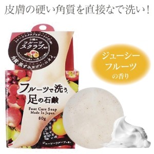 硬い角質も黒ずみ(※1)もニオイカバーも、この石けんひとつでケアOK!3種のフルーツスクラブ(※2)をはじめ、たっぷり贅沢に配合したフルーツ由来の成分でスクラブケア&ピーリングケアする足用石けんです。おすすめの使い方は、手に持ってクルクルと直接なで洗いする方法。足の凹凸ラインへフィットして、気になる部分をすっきり洗うことができます。ケアタイムをハッピーにするジューシーフルーツの香り。※1 黒ずみとは古い角質を含む汚れや乾燥・キメ乱れによるもの※2 エゾヘビイチゴ種子、モモ核、アンズ種子