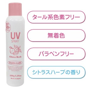 お子さまから大人まで、みんなで使えるアイテムを生み出す「MAMA-LABO(ママラボ)」シリーズより。国内最高基準値SPF50+・PA++++で紫外線を強力にカット、手軽に使える全身用日やけ止めです。家族みんなでたっぷり使える大容量。白くなりにくい透明タイプで、シューッとスプレーした後は肌サラサラ♪体はもちろん、服の上からや髪にも使えます。汗や水に強いウォータープルーフタイプなのに、石けんやボディーソープで簡単にオフOK。保湿成分配合で、紫外線ダメージを受けがちな肌にうるおいを与えます。虫が嫌がると言われる、レモンユーカリとシトロネラを配合した「シトラスハーブ」の香り。 …
