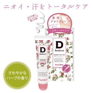 薬用のチカラで、汗もニオイもトータルケア!「ファイナルデオ」シリーズのデオドラントクリーム(ソフトタイプ)です。伸ばしやすいソフトなテクスチャーだから、なめらかになじんでベタつきナシ。先端がドーム型になっているので、直塗りできて手を汚しません。ニオイの原因菌を殺菌してニオイを元から抑えるとともに、毛穴にもアプローチして発汗も抑えます。爽やかなハーブの香りで心地よくケアできます。 数…
