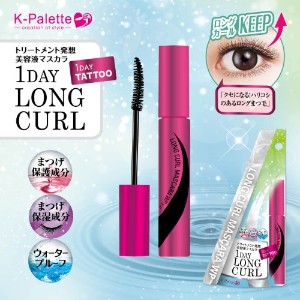 発色の美しさと落ちにくさで大人気の「1DAY TATTOO」シリーズより。カールアップしたロングまつ毛を長時間キープする、トリートメント発想の美容液マスカラです。密着性が高く、きれいに重なる2種類の軽量ファイバーを配合。なめらかなリキッドは重ねてもダマになりにくく、まつ毛へ均一に伸びて、毛先まで自然かつ繊細に仕上がります。また、まつ毛にハリ・コシを与える保護成分と、うるおい・ツヤを与える保湿成分を豊富に配合。メイク中もまつ毛をトリートメントします。タール系色素・染料フリー、さらにイージークレンジング処方で落とすのもらくちん。まつ毛を美しく彩りながら、ピンとハリのある上向きまつ毛を長時間キープします。