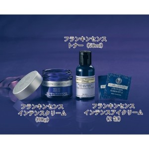 植物が持つ力を大切にする、イギリス生まれのヘルス&ビューティブランド「ニールズヤード レメディーズ」発。植物の力で肌負担を抑えながらケアしたい方におすすめのセットです。ブランド大人気のエイジングケア※1クリーム「フランキンセンスインテンスクリーム」は、過酷な砂漠に自生する樹木、フランキンセンスの生命力に着目し、植物由来の幹細胞エキスやヒアルロン酸といった保湿成分を配合。オーガニックにこだわる処方で乾燥ダメージを集中ケアしてハリ・弾力肌へ導きます。落ち着き感のある大人の香りも魅力。拭き取り用化粧水「フランキンセンスウォーター」のミニボトルと目元用クリーム「フランキンセンスインテンスアイクリーム」のパウチ2包付き。ベルメゾンだけの限定セットです。※1エイジングケアとは年齢に応じたお手入れ