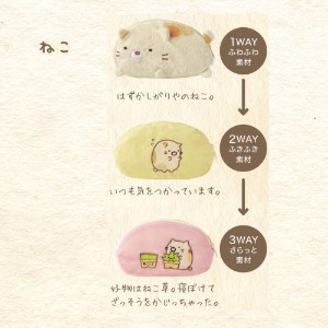 すみっこにいるとなぜか落ち着く…。ちょっぴりネガティブなのに心癒されるキャラクター「すみっコぐらし」のポーチです。ファスナー部分をくるっ、くるっとひっくり返せば、表情も素材も3通りにチェンジ。ふわふわソフトボア、拭きとりに便利なマイクロファイバー、汚れやコスメの粉がつきにくいさらっと素材と、用途に応じて使い分けができます。コスメや文房具などをたっぷり収納できる楕円型、文庫本やスマホなどをすっきり保管できる角型、こまごま小物を整理できるミニ巾着付き丸型の3タイプ。すみっコたちの秘話なども楽しみながら、色んな表情を楽しんで。